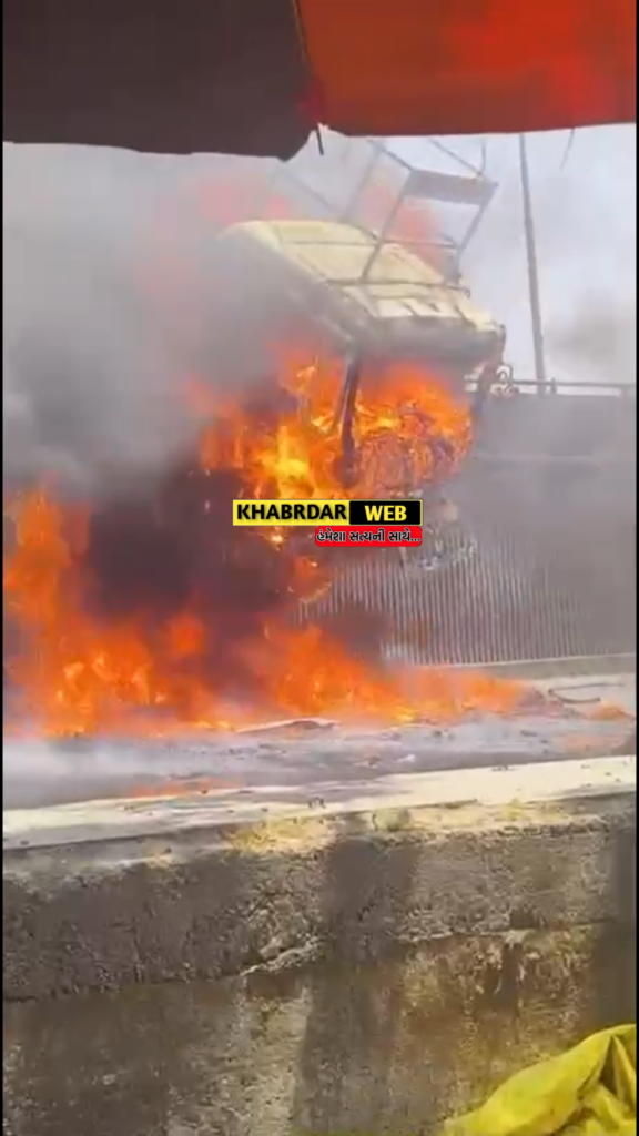 ફાયર વિભાગની સમયસૂચકતા ને કારણે મોટી હોનારત થતા ટળી ગઈ,કન્ટેનર ના કેબિન માં આગ લાગી ..કન્ટેનર બ્રિજ ની રેલીંગ તોડી બહાર લટકતું રહ્યું અને આગ ની જ્વાળા ફેલાતી રહી