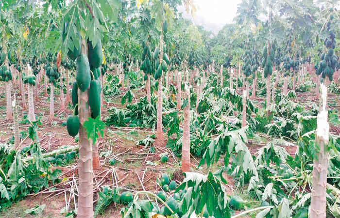 વાવેતર થયેલા પપૈયાના પાકનો વાવાઝોડાએ સોથવાળી દીધો હતો.આ ખેતરમાં અંદાજીત ૧૫