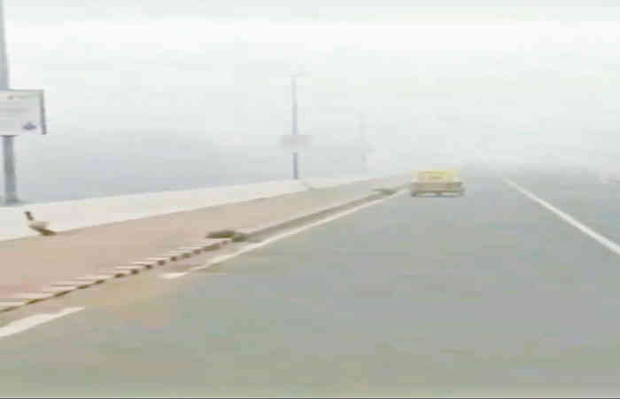 પણ ઘાઢ ધુમ્મસના વાતાવરણ વચ્ચે વાહનોમાં લાઈટોનો ઝગમગાટ જોવા મળ્યો હતો.