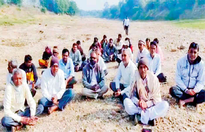 વાત્રક નદીમાં રામધૂન યોજી રહેલા કેટલાક ખેડૂતો પૈકી ખેડૂત