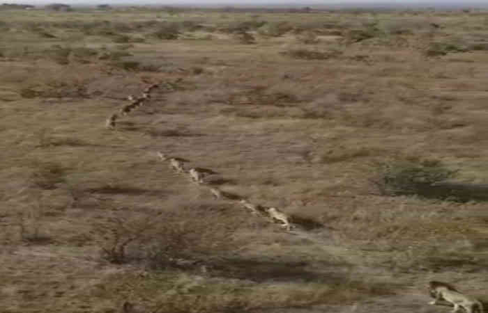 ડ્રોન કેમેરા દ્વારા શૂટ કરવામાં આવેલો વીડિયો સોશિયલ મીડિયા પર વાયરલ થઇ રહ્યો છે. વાયરલ વીડિયોને લઇ સોશિયલ મીડિયા ઉપર યુઝર્સ કોમેન્ટ કરી રહ્યાં છે કે લોકોને શિસ્તબદ્ધ રહેવાનું કહેવામાં આવે તો પણ તેઓ શિસ્તમાં રહેતા નથી પરંતુ આ પ્રાણીઓ કોઇના આદેશ વગર શિસ્તબદ્ધમાં રહે છે.