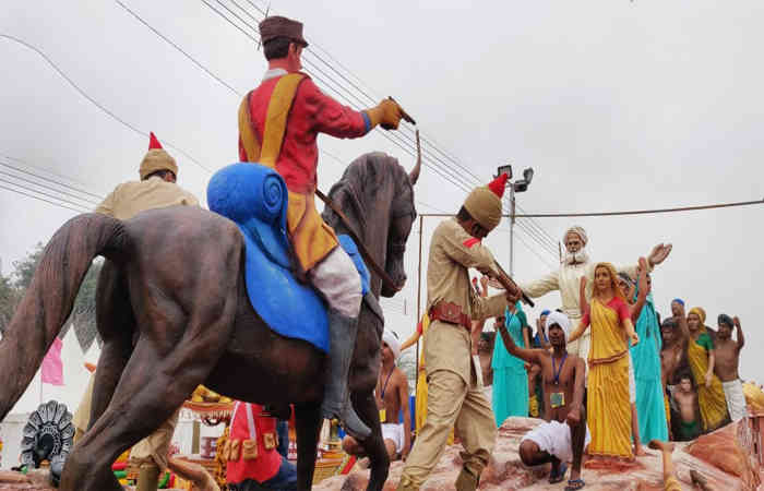 ટેબ્લોના અગ્રભાગમાં હાથમાં મશાલ લઈને ક્રાંતિની મિશાલ આપતા ચાર આદિવાસી ક્રાંતિવીરોના સ્ટેચ્યુ છે. ચાર ફૂટ ઊંચા આ સ્ટેચ્યુ સ્વાધીનતા સંગ્રામમાં આદિવાસીઓના શૌર્ય, સાહસ અને સમર્પણને ઉજાગર કરે છે.