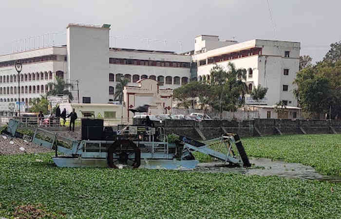વડોદરાના સમા તળાવમાં જંગલી વનસ્પતિ કાપવા વિડ કટર મશીન કામે લગાડ્યું