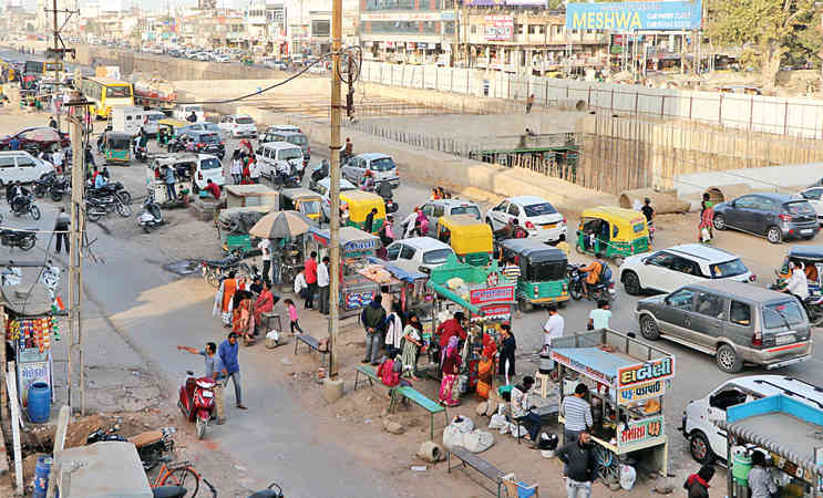 શહેરના ભરચક ગણાતા વિસ્તારોમાં લાગી જતાં અડીંગા છે.મોઢેરા ચોકડીએ હાલમાં અંડરપાસ