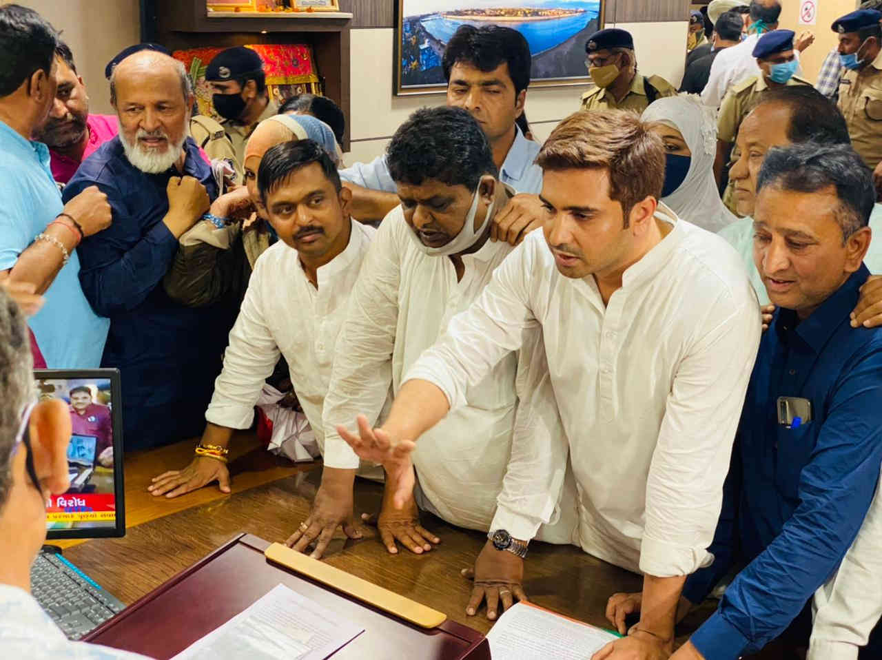 વચ્ચે કોંગ્રેસના કોર્પોરેટરો મેયર કિરીટ પરમાર પાસે પહોંચ્યા હતા.જયાં શહેરના કોટ