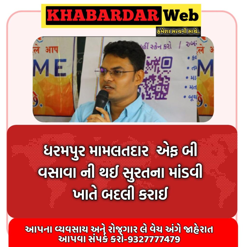 ગુજરાત મહેસુલ વિભાગ દ્વારા તારીખ 1 ફેબ્રુઆરી ના રોજ ગુજરાતના કુલ 4 મામલતદારની બદલી ના ઓર્ડર થયા હતા જેમાં ધરમપુર માં ફરજ બજાવતા મામલતદાર એફ બી વસાવા ની પણ બદલી સુરત ખાતે કરવામાં આવી છે તેમને સુરત માંડવી ખાતે બદલી કરાઈ છે જ્યારે અન્ય ત્રણ મામલતદાર કચ્છ ના મામલતદાર જે એચ સિંધી ને મોરબી જ્યારે આણંદ માં મામલતદાર કે કે વાળા ને દાહોદ મુકવામાં આવ્યા છે.જ્યારે ખેંગાર કુમાર સાનિયા ને મોરબી થી માળિયા મિયાણા મુકવામાં આવ્યા છે.