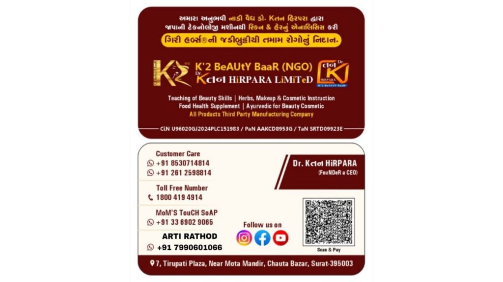 • K2 બ્યુટી બાર (NGO) અને ડો. Kતન હિરપરા લિમિટેડ કંપની (સુરત)