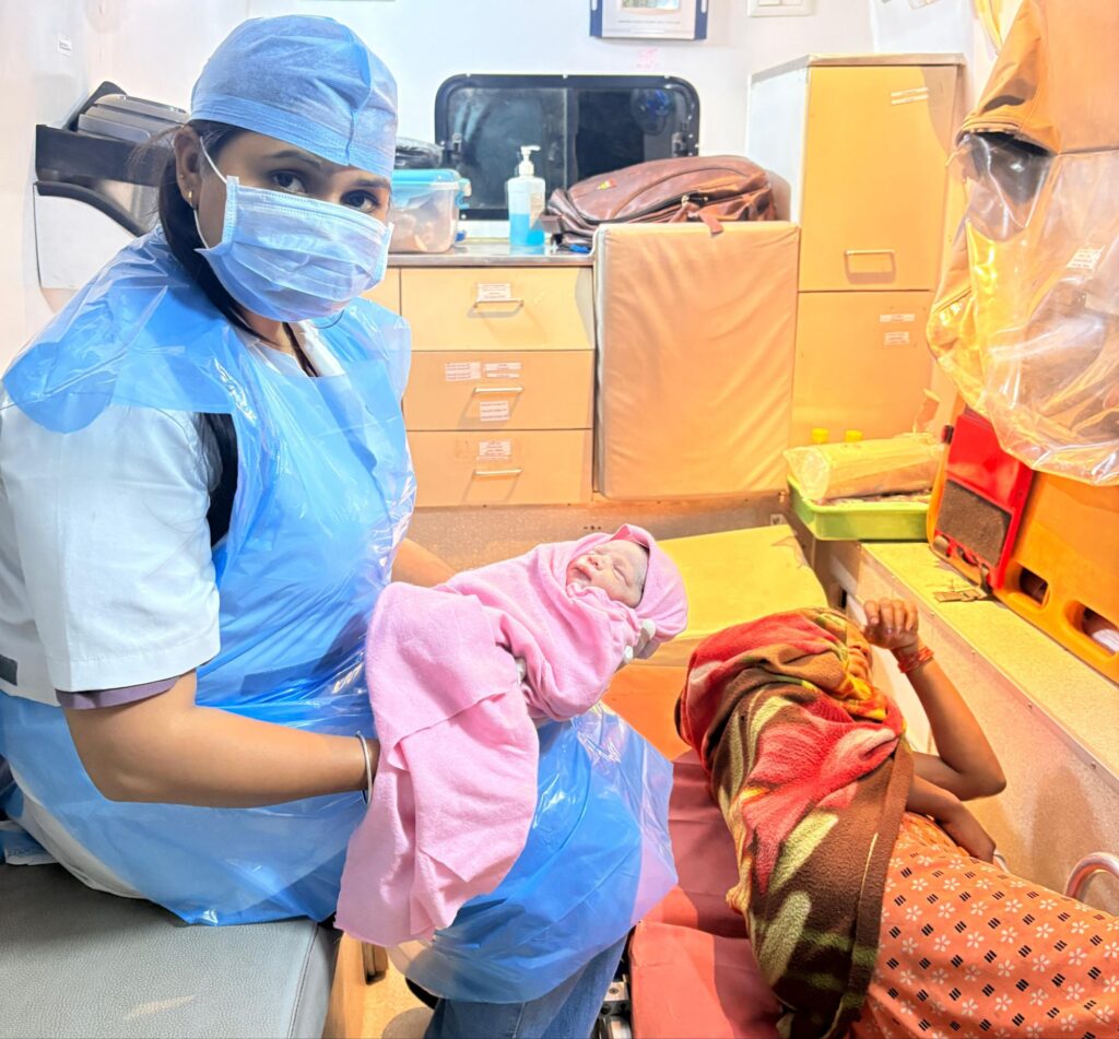 બેસાડી બાદ તરત જ હોસ્પિટલ તરફ એમ્બ્યુલન્સ હંકારી અમને ખુબજ પ્રસુતિ નો દુખાવો થતા રસ્તા માં ખુબજ પ્રસુતિ પીડા થતાં જોગવેલ પાસે એમ્બ્યુલન્સ સાઇડ ઊભી રાખી અને ત્યાં જ ડિલિવરી કરવાની ફરજ પડી હતી.આ દમિયાન એમની માહિતી લેતા ખબર પડી કે અમને ત્બીજી ડિલીવરી હોવાનું જણાવ્યું હતું. ઇ. એમ.ટી સુજાતા પટેલ અને પાયલોટ રાહુલ પટેલ એમ્બ્યુલન્સ ને ત્યાં જ રોકી અને ઇ. એમ. ટી એ સગર્ભા ને તપાસ કરતા જાણ્યું કે ડિલિવરી એમ્બ્યુલન્સ માં જ કરાવી પડશે. અને જેથી તરત જ બાળક નું માથું આવ્યુ. અને બાળક ડિલિવર થઈ ગયું.અને માતા નો પણ જીવ બચી ગયો તેથી સરસબેન ના પરિવાર ના સભ્યો ખુશ થઈ ગયા હતા અને એમ્બ્યુલન્સ ના કર્મચારી ઇ.એમ . ટી અને પાયલોટ નો આભાર માન્યો હતો આ નોર્મલ ડિલિવરી બાદ