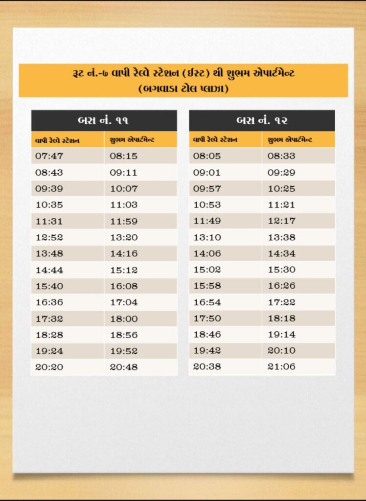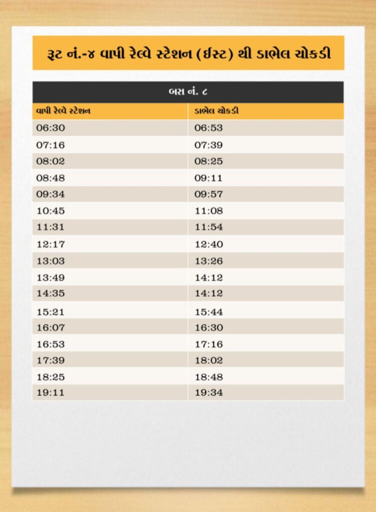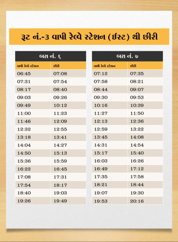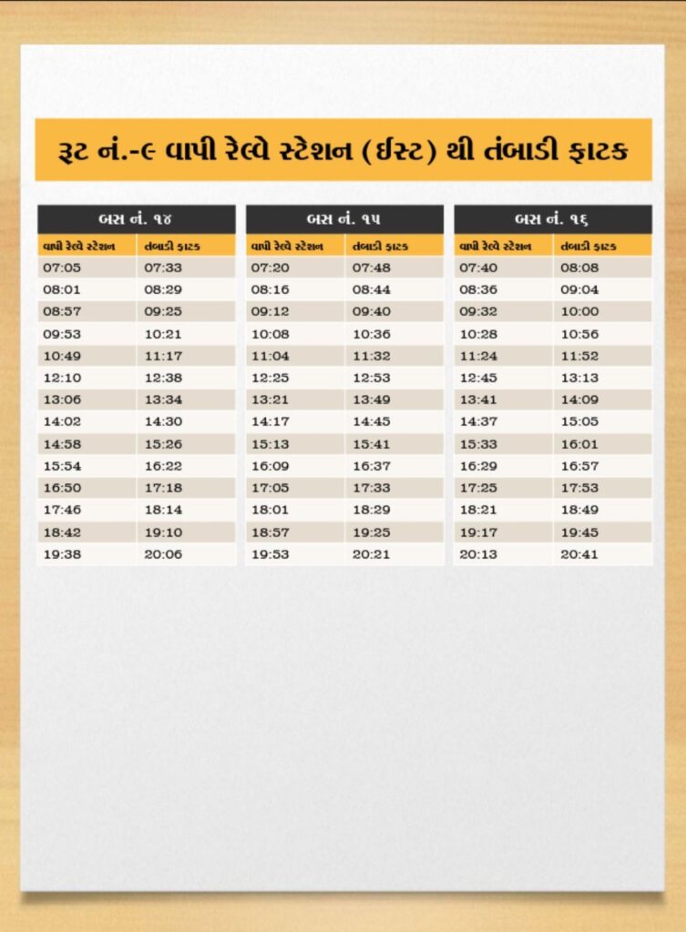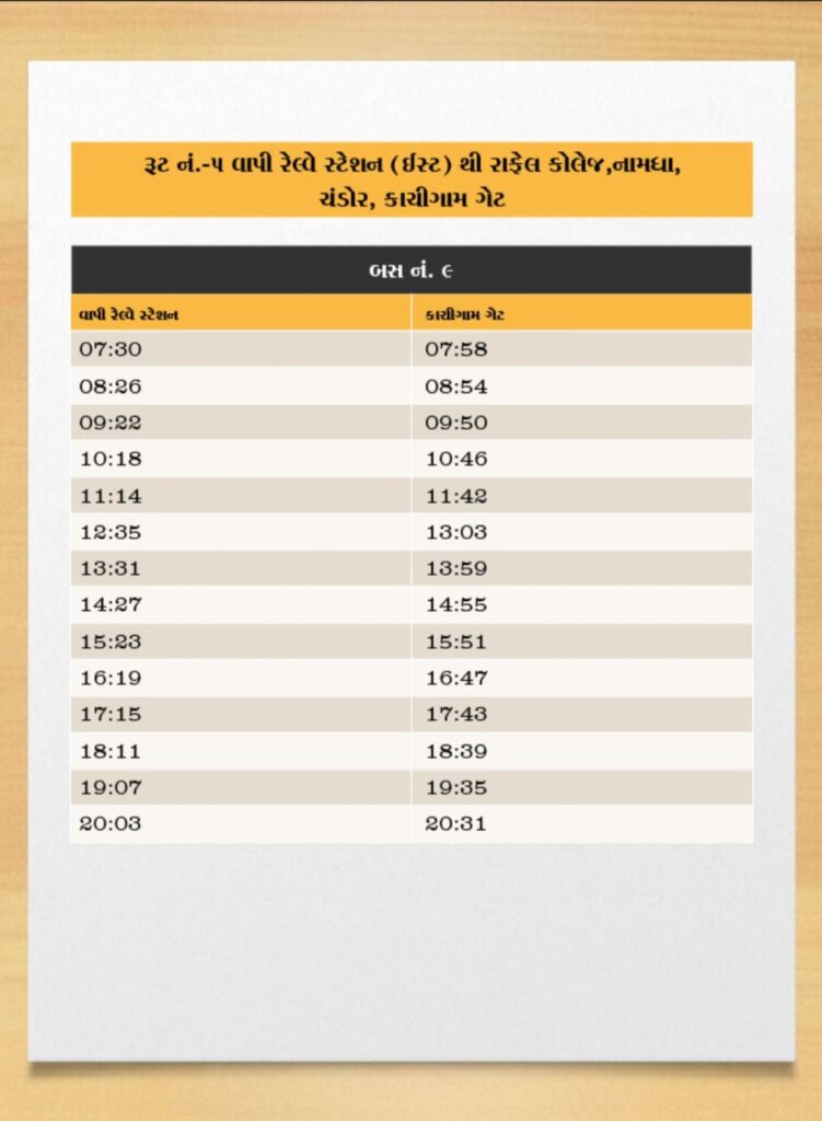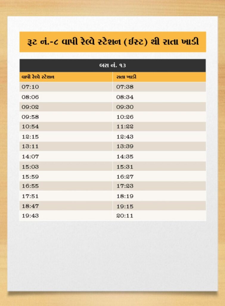 વાપી રેલ્વે સ્ટેશન(વેસ્ટ) થી રાફેલ કોલેજ,નામધા, ચંડોર, કાચીગામ ગેટ