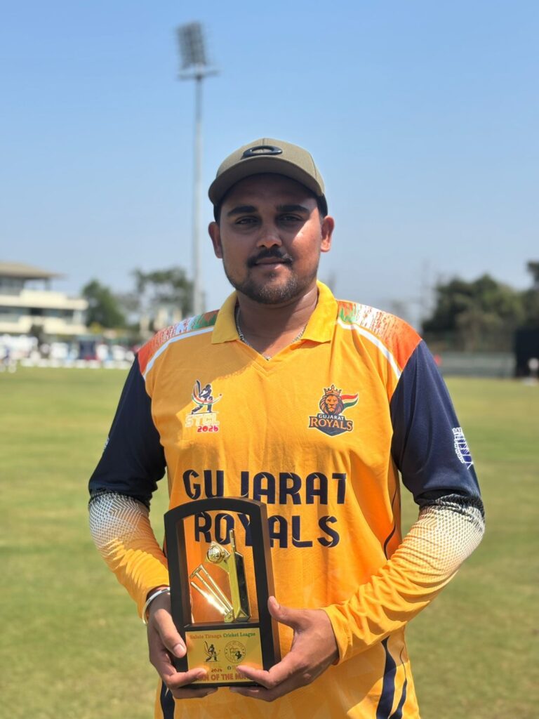 દરેક બોલ પર આક્રમકતા, દરેક શોટમાં શક્તિ અને જીત માટેનો જુસ્સો — હર્ષ દેસાઈએ આજે મેદાનમાં એક ધમાકેદાર પ્રદર્શન કર્યું છે, જેને દર્શકો લાંબા સમય સુધી યાદ રાખશે.