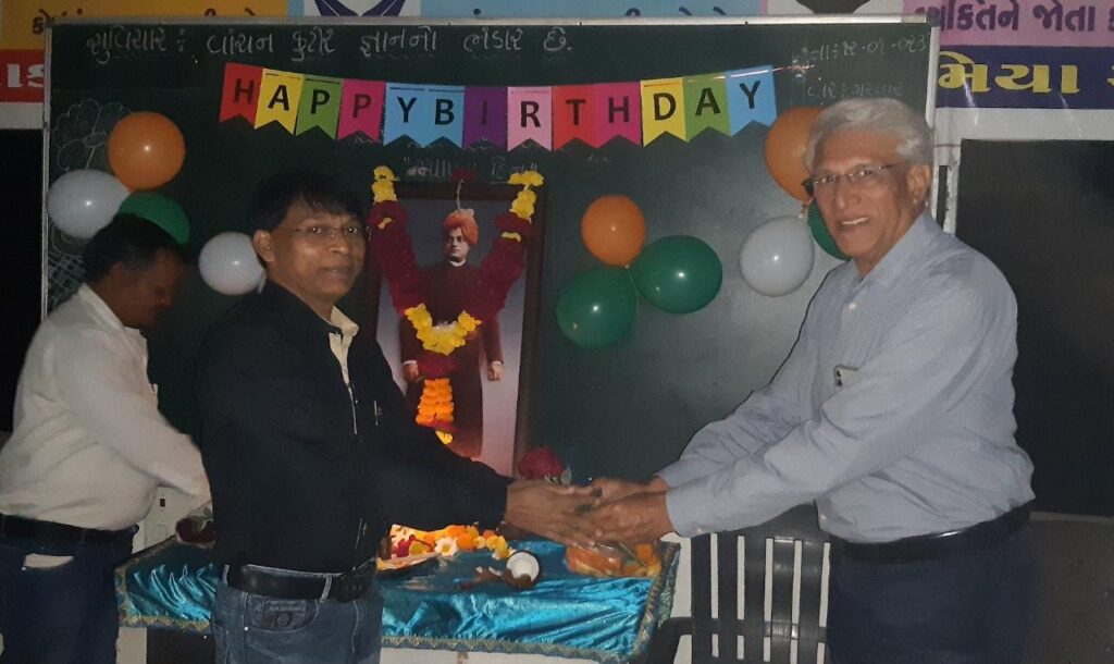 સમગ્ર ગુજરાતમાં સ્વામીજી ના વિચારોને યુવા સમક્ષ મૂકવાનું અદભુત કાર્ય કરી રહેલા ડૉ. દોલતભાઈ દેસાઈ (શ્રી રામકૃષ્ણ- વિવેકાનંદ સેવા સમિતિ ટ્રસ્ટ ધરમપુર) સ્વામીજીના વિચારો વિશે, ભારતીય સંસ્કૃતિ વિશે તથા યુવાનો વિશે સુંદર માર્ગદર્શન આપ્યું હતું.