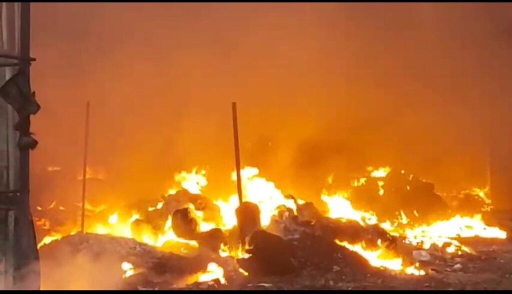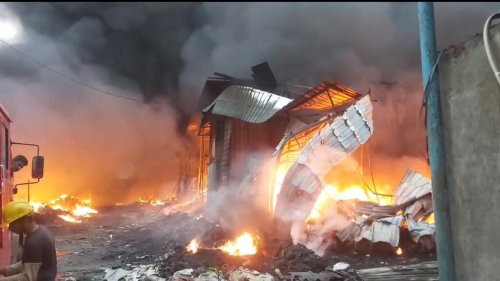 વાપી નજીકમાં આવેલા ડુંગરી ફળિયા ખાતે આજે ફરીથી આગની ઘટના બની છે જેમાં ભંગારના ગોડાઉનમાં અંદાજિત 10 થી વધુ આગની ચપેટમાં આવી ગયા છે જેને લઈને જિલ્લાનો બ્રિગેડ કોલ જાહેર કરવામાં આવ્યો છે એટલે કે જિલ્લાના તમામ ફાયર ફાઇટરો ઘટના સ્થળે પહોંચી આગને કાબુમાં લેવા માટે કવાયત હાથ ધરી છે પરંતુ સતત પાણીનો મારો ચલાવવા છતાં હજુ સુધી આગ કાબુમાં લાવી શકાય નથી
