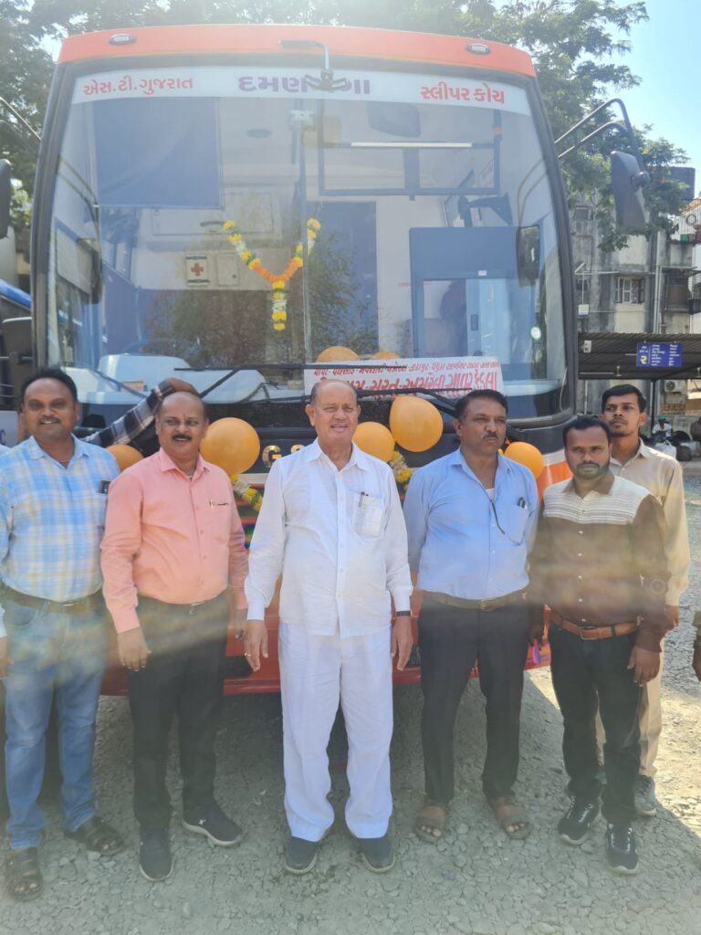 વાપી ડેપો દ્વારા આજ રોજ માજી મંત્રી અને ઉમરગામ ધારાસભ્ય રમણભાઈ પાટકર વાપી ડેપો ના એ.ટી.એસ વાપી એ.ટી.આઇ જે.એ તેમજ વાપી ડેપો ના એસ ટી સ્ટાફ તેમજ મુસાફર ની વચ્ચે આજ રોજ વાપી સેલવાસ સાવરકુંડલા વાયા સારંગપુર બસ સ્લીપર કોચ નું ઉદઘાટન કરવામાં આવેલ જે બસ સેલવાસ થી 16.00 કલાકે અને વાપી થી 17.00 વાગ્યે નીકળી સારંગપુર સવારે 5.00કલાકે પહોંચશે અને સાવરકુંડલા સવારે 7.00 વાગ્યે પહોંચી સાંજે 15.30 કલાકે નીકળી 17.30 વાગ્યે સારંગપુર થી વાપી આવવા માટે ની શુવિધા પ્રાપ્ત કરવામાં આવેલ હતી અનેક હનુમાન ભક્તો દ્વારા રજૂઆત કરતા વલસાડ વિભાગીય નિયામક શ્રી એન.એસ.પટેલ દ્વારા મુસાફર ની માંગણી તેમજ હનુમાન ભક્તો ની લાગણી ને વાચા આપી આજ રોજ માન્ય માજી મંત્રી ના હસ્તે બસ ઉદ્ઘાટન કરતા વાપી.સેલવાસ.દમણ.ઉમરગામ.ભીલાડ.સરીગામ.તેમજ પારડી વિસ્તાર ના મુસાફરો માં આનંદ ની લાગણી છવાઈ ગઈ હતી અને નવા વારાયેલા વિભાગીય નિયામક શ્રી એન એસ પટેલ નો ખૂબ ખૂબ આભાર વ્યક્ત કરવામાં આવેલ છે સાથે સાથે ત્રણ જેટલી મીની બશો પણ ચાલુ કરવામાં આવેલ છે જે બસ દાંડી.મરોલી.સરાઈ.સરીગામ.ભીલાડ .વાપી. થઈ વલસાડ અને એજ બસ એજ રૂટ ઉપર પછી દાંડી આવશે