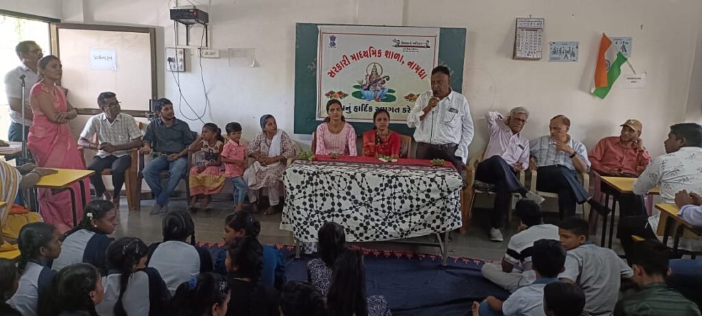 જેમાં નામધા અને ચંડોળ ગામના સરપંચ કાંતા ચેરીટેબલ ટ્રસ્ટ ના ટ્રસ્ટી ધીરેનભાઈ શાહ,ભરતભાઇ દેસાઈ,જગનભાઈબપટેલ,સિનિયર સીટીઝન કાઉન્સિલના વાપીના દિનેશભાઇ દેસાઈ કિશોરભાઈ દેસાઈ,મુકુંદ ભાઈ દેસાઈ,અને શાળાના વિદ્યાર્થીઓ મોટી સંખ્યામાં હાજર રહ્યા હતા સમગ્ર કાર્યક્રમ નું સંચાલન અવનીબેન પટેલે કર્યું હતું.શાળાના નિયમો અને વિદ્યાર્થીના અભ્યાસ માટે વાલીઓ જાગૃત થયા તેમજ શિક્ષક રિટેશભાઈ બારોલિયા એ માર્ગદર્શન આપ્યું તેમજ શાળાના આચાર્ય મનોજ એમ લીંબાચિયા એ શાળાની સિદ્ધિ અને સુવિધા વિશે જાણકારી આપી હતી