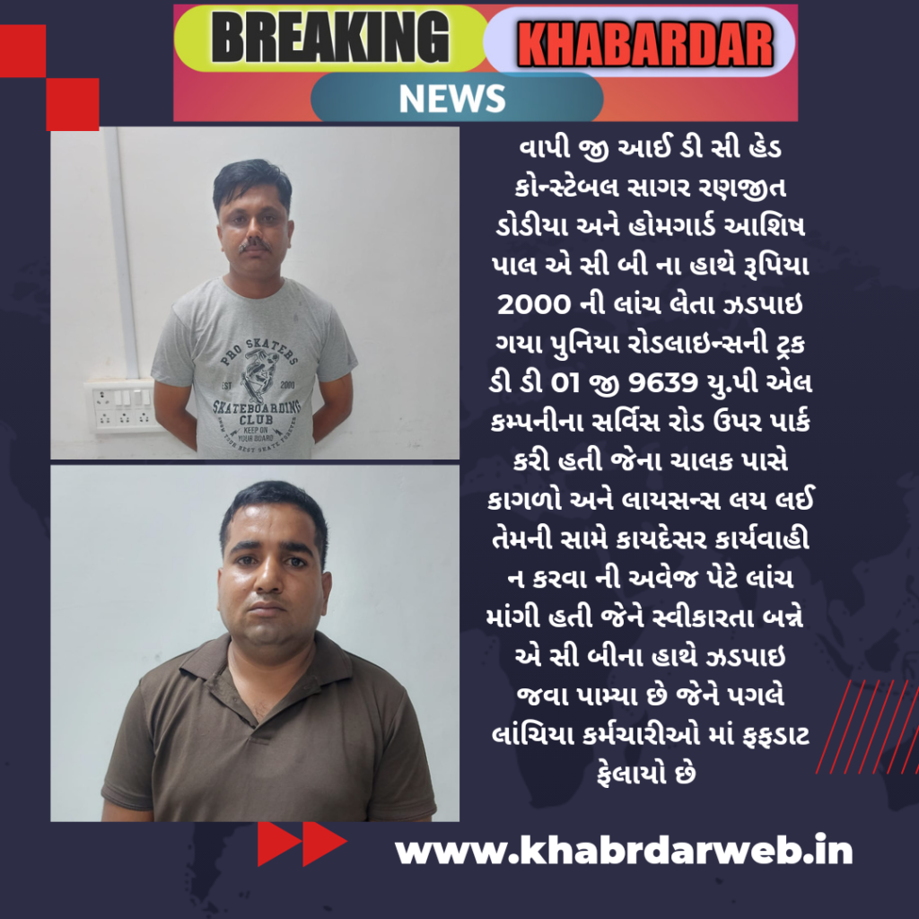 વાપી GIDC પોલીસ સ્ટેશનના હેડ કોસ્ટબલ અને હોમહાર્ડ 2000 લેતા ACBના હાથે ઝડપાયા