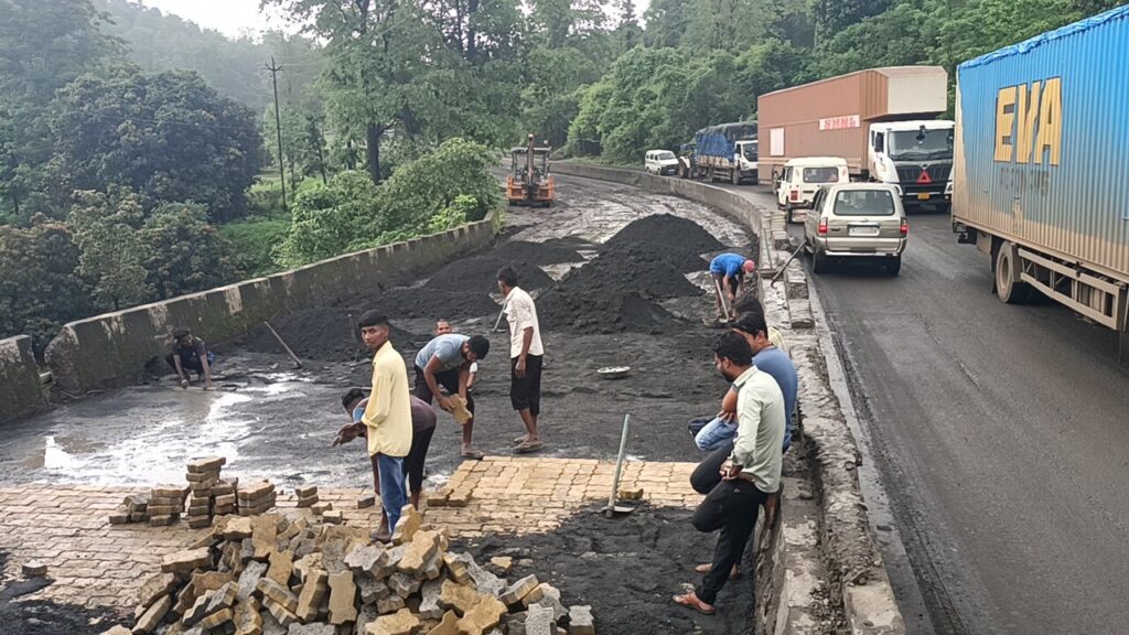 કપરાડાનો કુંભઘાટ જ્યાં થી શરૂ થાય છે ત્યાં થી લઈ માંડવા તડકેશ્વર મહાદેવ મંદિર સુધી તેમજ ત્યાં થી આગળ મુખ્ય ઘાટ ઉપર ચડતા અનેક સ્થળે માર્ગમાં ખાડા પડયા છે મુખ્ય હાઇવે માર્ગ હોવાથી અહીં મોટા ભાગે ભારે વાહનો પસાર થાય છે જેના કારણે અનેક વાહનો બ્રેકડાઉન થવાની સ્થિતિ પણ સર્જાય છે ત્યારે હાલ તો વહીવટી તંત્ર જાગ્યું છે અને રોડ ઉપર પડેલ ખાડા દૂર કરવા માટે પેવર બ્લોક બેસાડવા માટેની કામગિરી શરૂ કરવામાં આવી છે