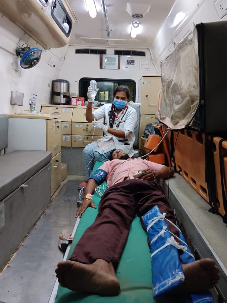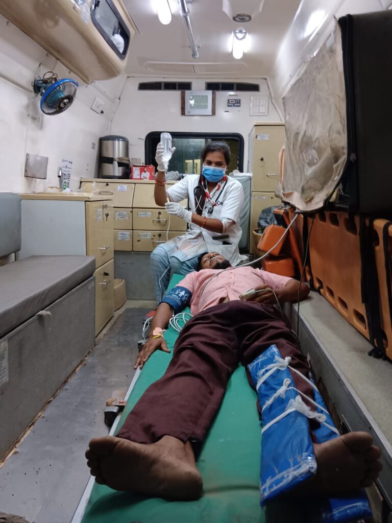 સ્થળ પર પહોંચ્યા બાદ ખબર પડી કે દર્દી ને આંખે ઝાંખું દેખાવા લાગ્યું હતું. શ્વાસ લેવામાં તકલીફ થતી હતી દર્દીનું માથું પણ ભારે થવા લાગ્યું હતું દર્દી ને તાત્કાલિક એમ્બ્યુલન્સ માં લઈ હોસ્પિટલ જવા નીકળી ગયા હતા.દર્દી ને ઓક્સિજન આપી વાયટલ ચેક કરી .અને પગનું હલન ચલન ના થાય તે માટે સ્પીલન્ટીગ કરી, ઈ આરસીપી ડોક્ટર ના કેવા પ્રમાણે દર્દી ને ઇંજકશન એન્ટી સ્નેક વિનોમ, inj.એવિલ Inj. હાઈડ્રો કોટેર્ઝોન અને inj.એનેસ નો બાટલો આપી . પાયલોટ નરેડરભાઈ એ દર્દી ને જલદી થી શ્રી સાંઈનાથ હોસ્પિટલ ધરમપુર માં ખસેડાયા હતા.જ્યાં હાલ તેની સારવાર ચાલી રહી છે આમ ફરી 108 એમ્બ્યુલન્સ સર્પદંશના દર્દી માટે એક સંજીવની સમાન સાબિત થઈ છે