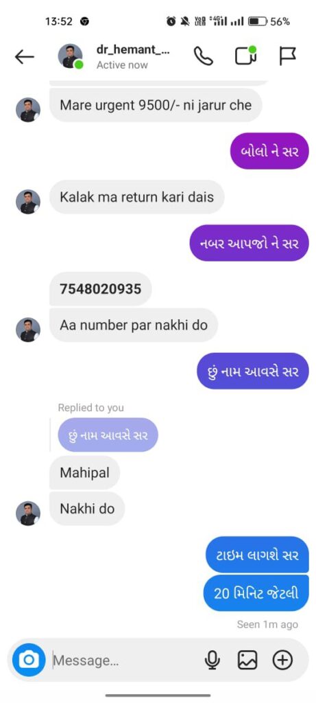 ધરમપુર શહેરમાં આવેલી જાણીતી હોસ્પિટલ સાઈનાથના ડોક્ટર હેમંતભાઈ પટેલ જેવો ભાજપના અગ્રણી નેતા છે અને સામાજિક કાર્યકર પણ છે અને સમગ્ર ધરમપુરમાં તેઓ ખૂબ સારી છાપ ધરાવે છે ત્યારે સોશિયલ મીડિયામાં તેમને પણ એક કડવો અનુભવ થયો છે હાલમાં તેમના નામની એક ફેક આઈડી instagram પર બનાવી કોઈક ગઠીયા દ્વારા મેસેન્જર થી મેસેજ કરી લોકો પાસે પૈસા માંગતો હોવાનું જાણવા મળી રહ્યું છે ત્યારે કોઈકની પાસે 9,500 માંગી રહ્યો હોવાનું જાણવા મળતા સમગ્ર બાબતની જાણ ડોક્ટર હેમંત પટેલ ને થતા તેઓએ તકેદારીના ભાગરૂપે વલસાડ સાયબર ક્રાઇમ પોલીસ મથકમાં સમગ્ર બાબતની જાણકારી છે અને લોકોને આ ફેક આઈડી થી સતર્ક રહેવા જણાવ્યું છે