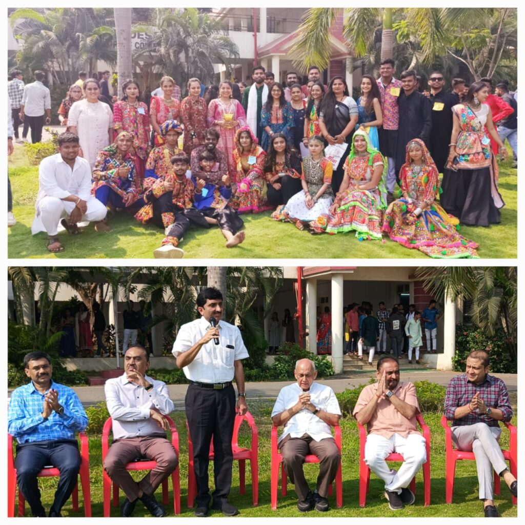 આર.કે.દેસાઈ ગૃપ ઓફ કોલેજીસ માં નવરાત્રીનો પર્વની ઉજવણી કરવામાં આવી હતી. સૌ પ્રથમ માતાજીની આરતી દ્વારા સમગ્ર વાતાવરણને ભક્તિમય બનાવી માં અંબેમાતા ને આરાધ્યા હતા. જેમાં મુખ્ય મહેમાન તરીકે આદરણીય શ્રી કલ્યાણ બેનરજી (ભૂતપૂર્વ પ્રેસિડેન્ટ ઓફ રોટરી ઇન્ટરનેશનલ) સાહેબને સંસ્થાના ચેરમેનશ્રી મિલન દેસાઈએ સાલ ઓઢાડી પુષ્પગુચ્છ આપી સ્વાગત કરી આવકાર્યા હતા તથા અન્ય મહેમાન શ્રીઓ યોગેશ કાબરિયા, સતિષભાઈ પટેલ, હેમંતભાઈ પટેલ, કલ્પેશ વોરા હજાર રહી વિદ્યાર્થીઓને પ્રગતિના પંથે આગળ વધવા માટે આશ્વાસન આપી ગરબા રમવા માટે અભિનંદન પાઠવ્યા હતા. ખૈલાયાઓ માં છુપાય રહેલ વિવિધ કળા કૌશલ્ય બહાર લાવી શકે એ માટે ગરબાની સ્પર્ધાઓ રાખવામાં આવી હતી જેમાં નિર્ણાયક તરીકે કેવલ મહયાવંશી અને પૂજા ટંડેલ એ ભૂમિકા ભજવી હતી. બેસ્ટ ડ્રેસ, બેસ્ટ એક્શન જેવી સ્પર્ધાઓ યોજવામાં આવી હતી. જેમાં પ્રોત્સાહિત સ્વરૂપે 19 વિદ્યાર્થીઓને ઇનામ પણ આપવામાં આવ્યું હતું અને આ સમગ્ર કાર્યક્રમ કોલેજના સાંસ્કૃતિક મંત્રી મંડળના નેજા હેઠળ યોજવામાં આવ્યો હતો.