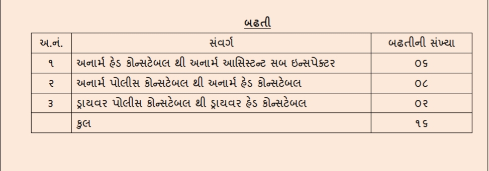 વલસાડ જીલ્લામાં ફરજ બજાવતાં જુદા જુદા સંવર્ગના પોલીસ કર્મચારીઓને બઢતી અને ઉચ્ચતર પગાર ધોરણ ના લાભ આપતા વલસાડ જીલ્લા પોલીસ વડા