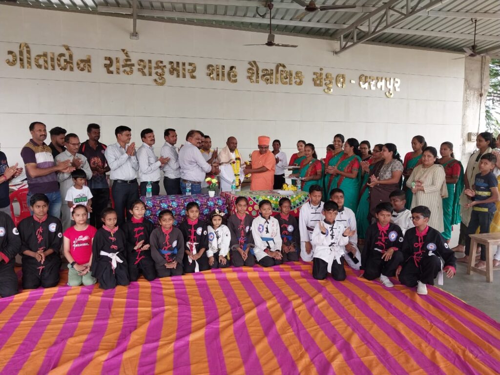 આજ રોજ વલસાડ જિલ્લામાં ધરમપુર મુકામે એસ, એમ, એસ, એમ , હાઇસ્કુલ ના કમ્પાઉન્ડમાં તા 12 /11 / 2023 ને રવિવારે સવારે 10,00 કલાકે માસ્ટર હિતેશ બી પ્રજાપતિ, તેમજ દક્ષા એમ ચૌધરી નું સન્માન શ્રી સ્વામિનારાયણ સ્કૂલ રામવાડી ના ટ્રસ્ટી શ્રી હરિવલ્લવભ સ્વામીજી તથા શાળાના આચાર્ય શ્રીઓ મહેશ સર, વિદિશાબેન ,હેતલ બેન, રાધાબેન, રક્ષાબેન તેમજ શાળના શીશકગણ તથા વુશું કુંગફુ ના તાઈ ચી ના કોચ અને વિદ્યાર્થીઓ તેમજ વાલિગણ દ્વારા માસ્ટર હિતેશ બી પ્રજાપતિ અને દક્ષા એમ ચૌધરી નું સ્વામીજી હસ્તકે. પૂછપગુચ્છ તેમજ સાલ અને પ્રમાણપત્ર આપી સન્માન કરવામાં આવ્યું હતું