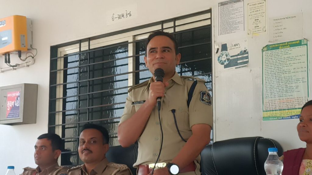 ગામના સ્થાનિક આગેવાનો દ્વારા જમીન માપણીના પ્રશ્નો અંગેની રજૂઆત કરાઈ હતી જેમાં ડી એલ આર વિભાગ દ્વારા કરવામાં આવેલી ક્ષતિઓ અંગે જાણકારી અપાઈ હતી જે બાબતે તેઓ વહીવટી અને સંકલનની મીટીંગમાં યોગ્ય રજૂઆત કરશે તે અંગે પણ ડીએસપી દ્વારા ખાતરી આપવામાં આવી હતી આ પ્રસંગે ડોક્ટર કરણરાજ વાઘેલાએ જણાવ્યું કે શિક્ષણ નો હાલના સમયમાં ખૂબ મહત્વ છે તેમજ સ્વામી વિવેકાનંદ હોય કે ડોક્ટર બાબા સાહેબ આંબેડકર એ તમામ લોકો શિક્ષણને ખૂબ ઊંચો દરજ્જો માને છે તેમજ તેઓ પણ કહી ગયા છે કે શિક્ષણ મળશે તો જ વ્યક્તિ ઉચ્ચ સ્થાને પહોંચી શકશે જેથી દરેક યુવાનોને ઓછામાં ઓછું ગ્રેજ્યુએટ સુધી અભ્યાસ કરવા માટે અનુરોધ કર્યો હતો તે સાથે જ તેમણે મહિલાઓને પણ જણાવ્યું કે તેમના પતિદેવો જ્યારે પણ બહાર જાય ત્યારે બાઈક ઉપર તેમની સલામતી માટે હેલ્મેટ અવશ્ય પહેરે તે અંગેનું ધ્યાન રાખવા જણાવ્યું હતું તેમણે કહ્યું કે હાલમાં જ કરવામાં આવેલા સર્વે અનુસાર વલસાડ જિલ્લામાંથી પસાર થતાં નેશનલ હાઇવે ઉપર કુલ 23 જેટલા બ્લેક સ્પોટ નક્કી કરવામાં આવ્યા છે જેમાં ત્રણ જેટલા બ્લેક સ્પોટ નાનાપોન્ડા કપરાડા માર્ગ ઉપર છે જ્યારે અન્ય 20 જેટલા બ્લેક સ્પોટ નેશનલ હાઈવે નંબર 48 ઉપર છે જ્યાં આગળ વર્ષમાં સૌથી વધુ વાર અકસ્માતો થાય છે અને અકસ્માતોથી બચવા માટે બાઈક ચાલકોએ હેલ્મેટ પહેરવું ખૂબ જ જરૂરી છે જેથી તમામ લોકો હેલ્મેટ પહેરે તે માટે તેમણે સંપૂર્ણ બહાર મૂક્યો હતો, તેમણે ગ્રામજનોના વખાણ કરતા જણાવ્યું કે ગામમાં કોઈપણ મોટા ગુના બન્યા નથી એટલે ગ્રામજનોમાં એકતા અને સંવાદિતા જોવા મળી રહી છે આ પ્રસંગે તેમને સાયબર ક્રાઇમ ને લગતા વિવિધ ગુનાઓ ગુનેગારો કેવી રીતે લોકોને ફસાવે છે તે અંગે પણ લોક ઉપયોગી માહિતી આપી હતી તેમજ કોઈપણ સાયબર ક્રાઇમનો ભોગ બને તો તેવા સમયે વલસાડ જિલ્લા ડીએસપી કચેરી ખાતે ચાલતા સાઇબર ક્રાઇમમાં બે ચીજક બની ફરિયાદ નોંધાવવા માટે પણ જણાવ્યું હતું તેમણે લોકોને કહ્યું કે અજાણી લિંક ઉપર ક્યારે પણ સાથે જ સોશિયલ મીડિયા ઉપર આવતા અજાણ્યા નંબરના વિડીયો કોલ ક્યારે પણ ઉઠાવવા ન જોઈએ નહીં તો તમે પણ સાયબર વિડીયો કોલ ના ભોગ બની શકો છો સાથે સાથે તેમણે જણાવ્યું કે ગ્રામીણ કક્ષાએ રહેતા લોકોએ અવારનવાર પોતાની જમીનમાં સાત બારના ઉતારા અને જરૂરી દસ્તાવેજોમાં પોતાના નામ છે કે નહીં ક્યારેય કોની કેટલી એન્ટ્રી પડી છે એ તમામ વિગતો ઉપર પણ નજર રાખતા રહેવા જણાવ્યું હતું કારણ કે જે રીતે લેન્ડ ગેબીંગના ગુનાઓ હાલ નોંધાઈ રહ્યા છે તેને જોતા ભૂ મફિયા સક્રિય થયા હોવાનું પણ તેમણે જણાવ્યું હતું સ્થાનિક લોકોને આરોગ્ય લગતી જાણકારી આપતા ડોક્ટર કરણરાજ વાઘેલાએ જણાવ્યું કે હાલમાં સરકારની આયુષ્માન ભારત યોજના ખૂબ જ ઉપયોગી છે કોઈપણ ગંભીર બીમારી હોય કે કોઈ પણ મોટા ઓપર